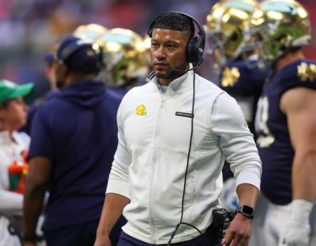 A prep wrestling coach has accused Notre Dame football coach Marcus Freeman of battery following an...